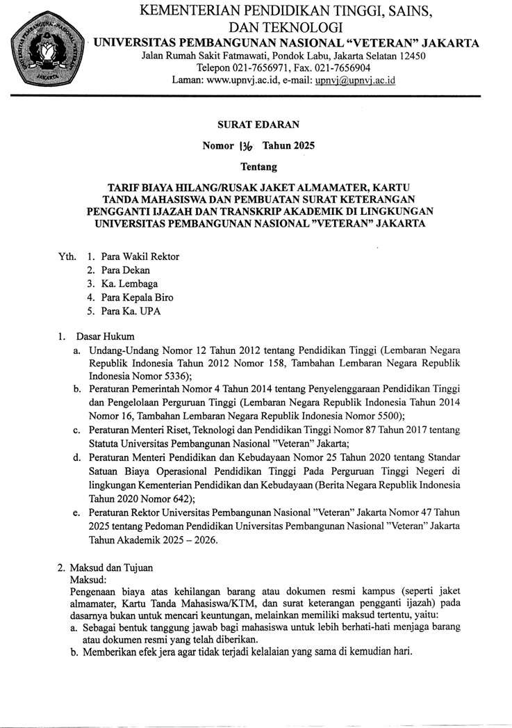 FisipUPNVJ-Berdasarkan Peraturan Rektor Universitas Pembangunan Nasional ”Veteran” Jakarta Nomor 47 Tahun 2025 tentang Pedoman Pendidikan Universitas Pembangunan Nasional ”Veteran” Jakarta Tahun Akademik 2025 — 2026.