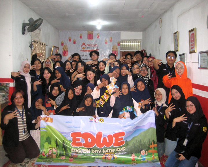 FisipUPNVJ – Pada tanggal 19 Juli 2025,English of Siloence (EoS) FISIP UPN “Veteran” Jakarta telah sukses dalam menyelenggarakan program eventual English Day with EoS (EDWE) 2025 secara offline di Panti Asuhan Yatim dan Dhuafa Mizan Amanah Srengseng Sawah. EDWE 2025 mengusung tema “Little Explorer : Discover The World Around You With English”, tema ini diangkat dengan tujuan untuk memberikan edukasi bahasa inggris serta meningkatkan kesadaran anak anak panti akan pentingnya menjaga lingkungan di sekitar kita. Jakarta, 15 Agustus 2025