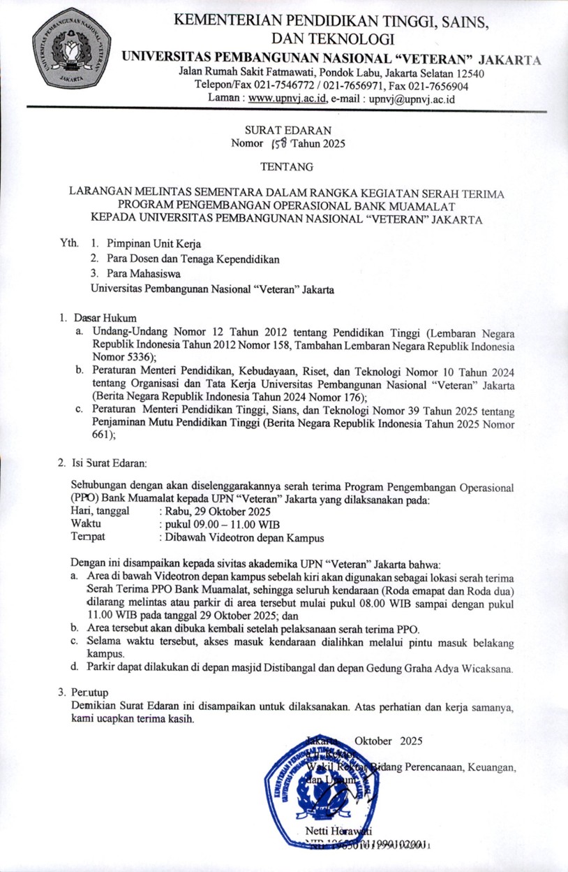 Dengan ini disampaikan kepada sivitas akademika UPN “Veteran” Jakarta bahwa: