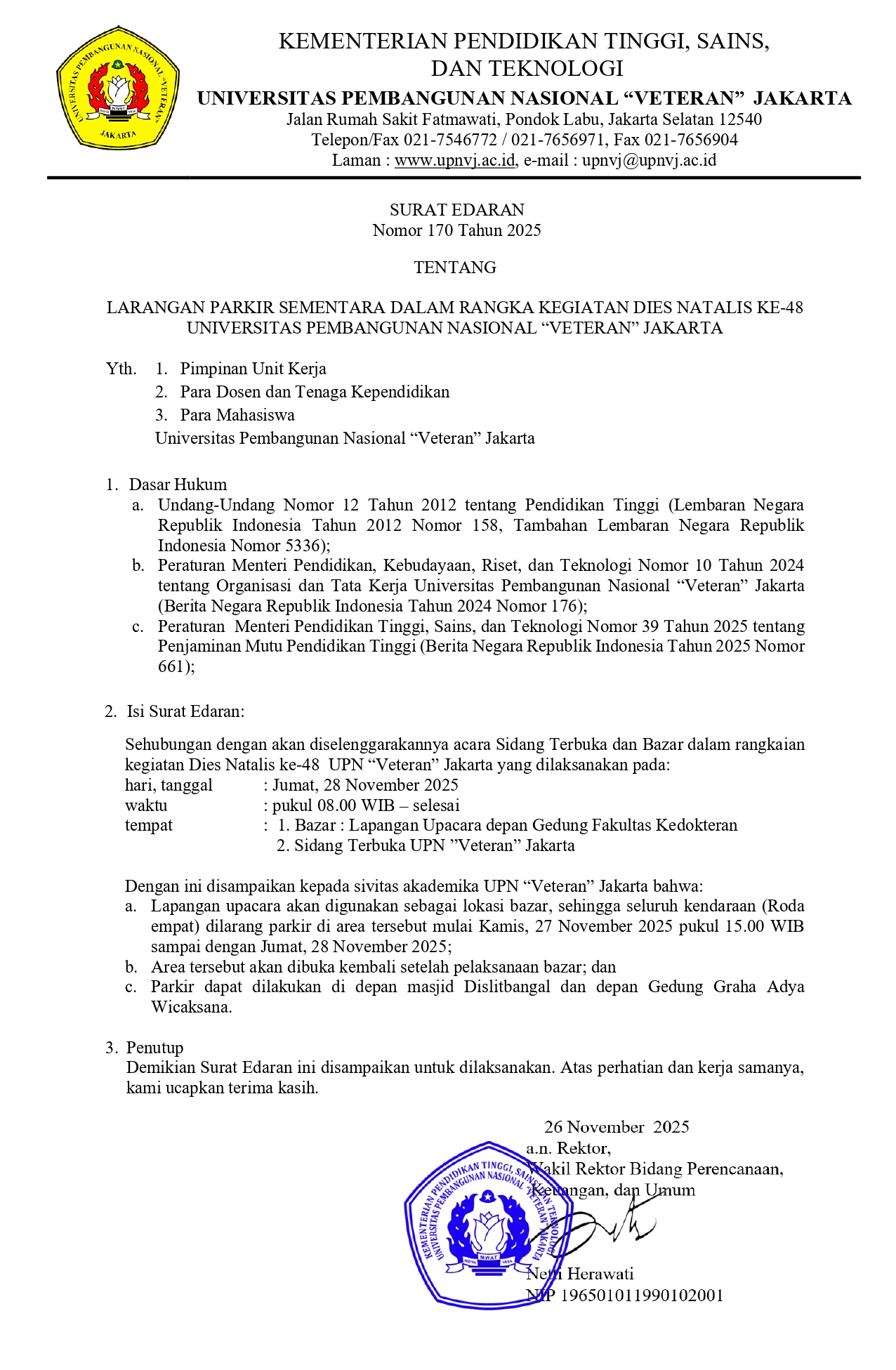 Dengan ini disampaikan kepada sivitas akademika UPN “Veteran” Jakarta bahwa: