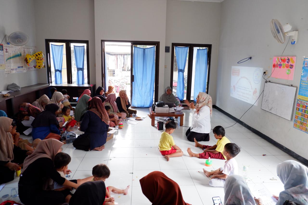 “Literasi dini sebaiknya terjadi secara alami tanpa paksaan. Hal ini dapat dimulai dengan membacakan cerita agar anak lebih mengenal kosakata yang akan digunakan dalam kehidupan sehari-hari,” jelas tim dalam sesi pemaparan materi. Tim juga mengingatkan pentingnya menjaga masa bermain anak; jika calistung dipaksakan sebelum usia 7 tahun, dikhawatirkan anak akan kehilangan masa bermainnya dan mengalami tekanan psikis.